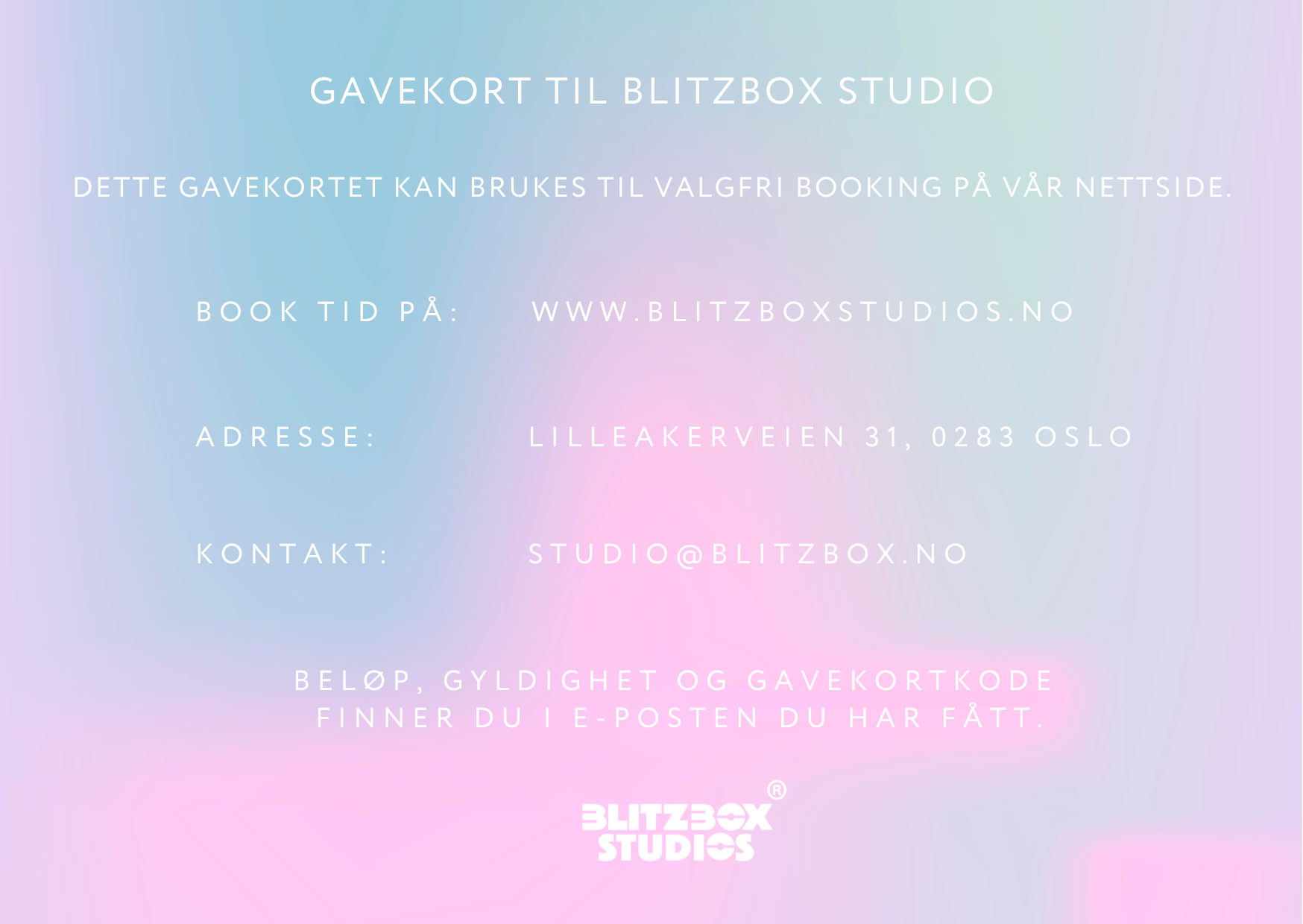 Gi noen du er glad i en studioopplevelse de sent vil glemme. Gavekortet sendes digitalt og kan brukes til hvilken som helst pakke – når det passer best.